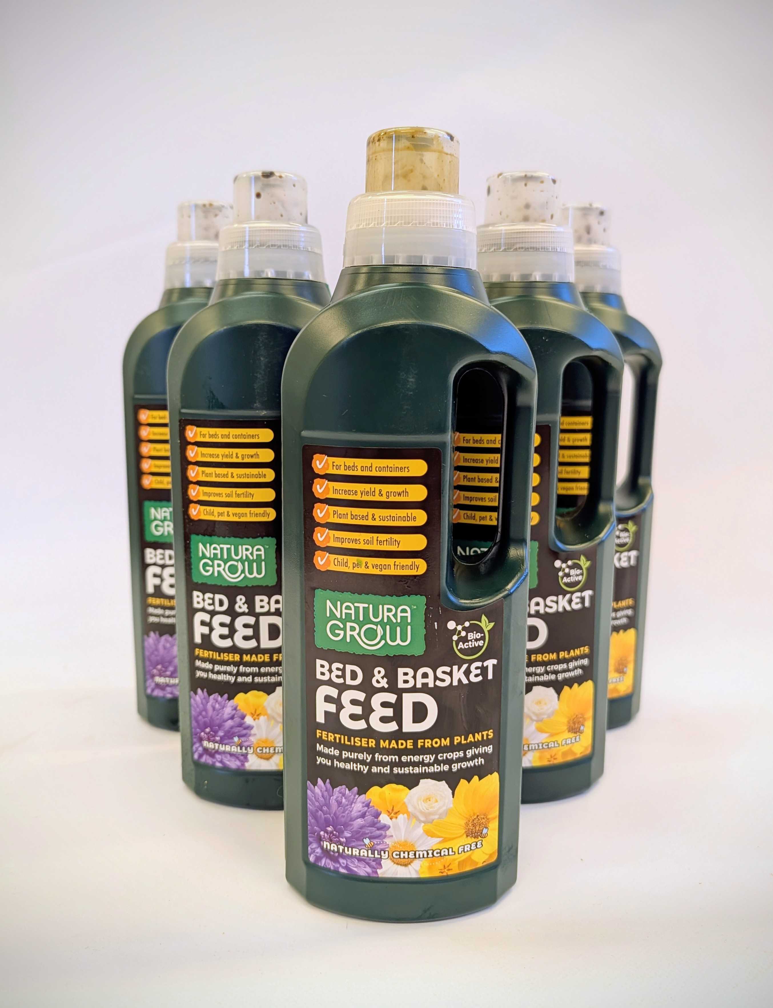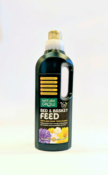 Natura Grow Bed & Basket Feed is an organic and vegan-friendly liquid fertiliser that is specifically formulated for garden beds and hanging baskets. It is made entirely from plants and nature, providing a healthy growth for your plants without the need for any harmful chemicals. The bio-active formula is ready to use, and it's rich in essential macro and micro-nutrients, as well as beneficial bacteria that help strengthen the plants and make them resistant to disease. The Natura Grow liquid is produced on a farm located in Cambridgeshire, where energy crops are sown, grown, and harvested. These crops are then fed into anaerobic digesters that generate gas and electricity, which is then supplied to the national grid as green energy. The by-product of this process is then transformed into Natura Grow pellets and liquid fertilisers on-site, thus reducing the carbon footprint. To use, simply shake the bottle well before use, and mix 100ml of feed per 4.5 liters of water. One bottle of Natura Grow Bed & Basket Feed is enough for 10 watering cans. For strong growth, it is recommended to apply the feed every 7 days, and for steady growth, every 10-14 days. With Natura Grow Bed & Basket Feed, you can expect outstanding results and improved soil fertility, making it the perfect fertiliser for your gardening needs.