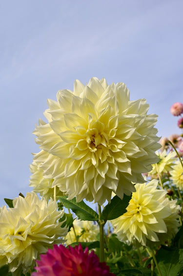 Dahlia ‘Kelvin Floodlight’ showcases large, bright yellow blooms that light up any garden with vibrant cheer. Thriving in full sun, it flowers from mid-summer to autumn. Easy to grow, it’s perfect for borders, containers, and bold, long-lasting cut flower displays.