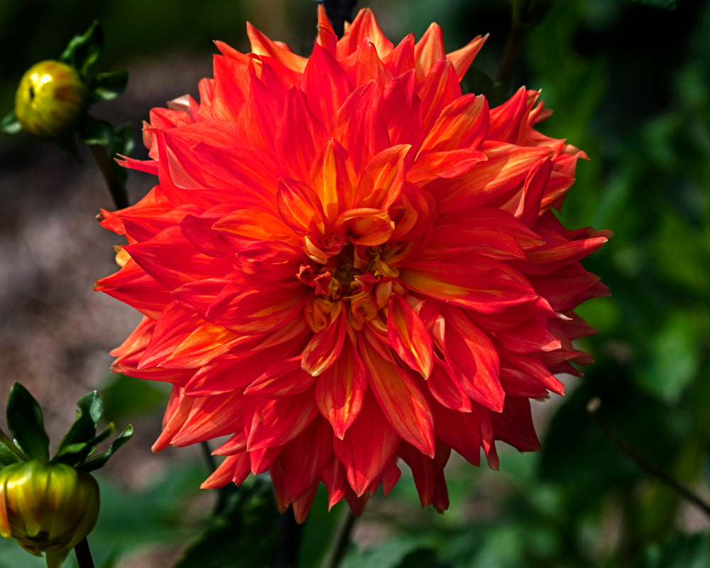 Dahlia ‘Neon Splendour’ bursts with vivid orange-red blooms that glow like embers, creating a striking focal point in any garden. Its bold, bright flowers stand tall on strong stems, offering a long, abundant display perfect for cutting and adding dramatic colour from midsummer to frost.