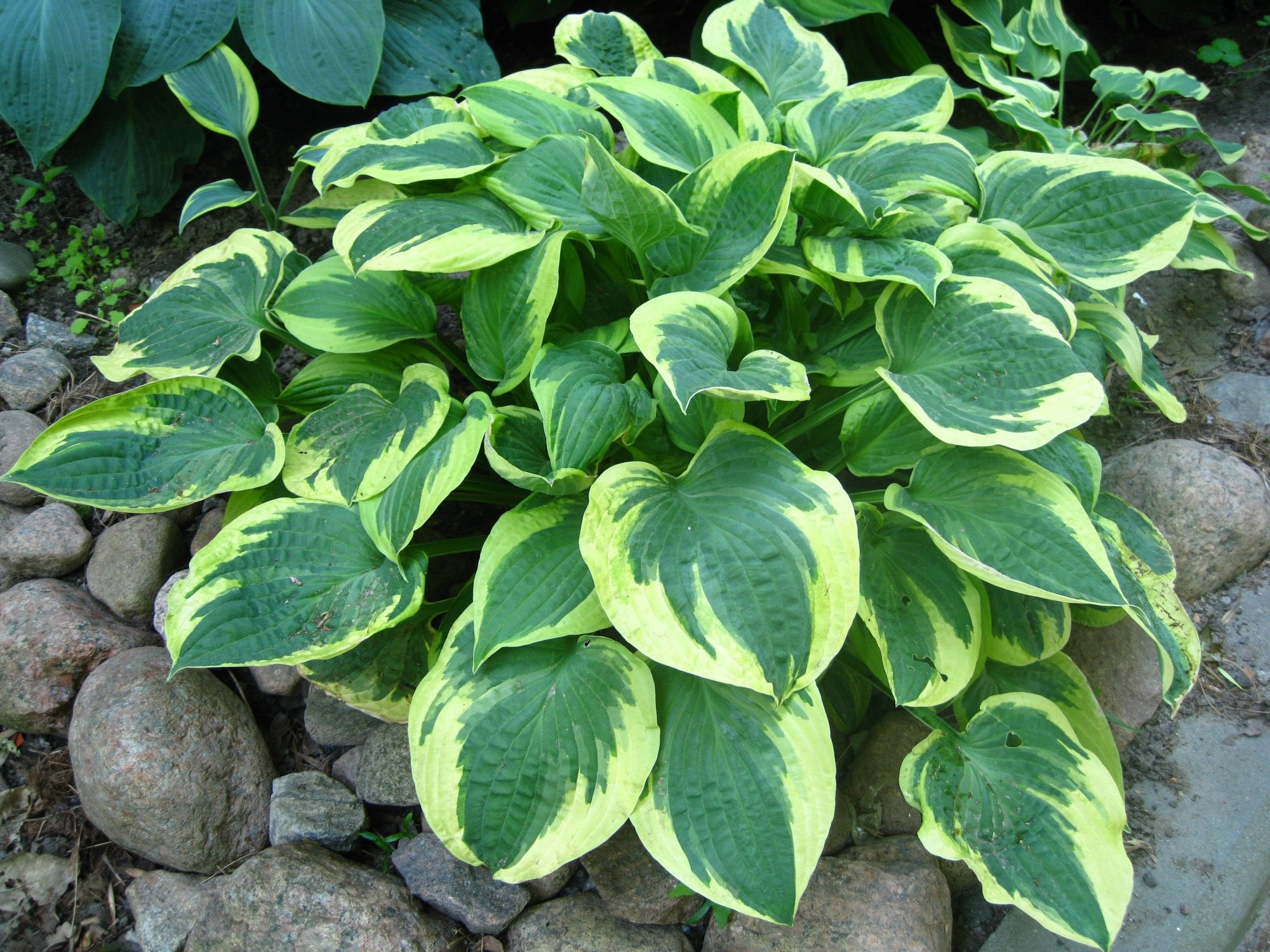 Hosta 'Brim Cup' is a hardy perennial admired for its compact clumps of green foliage with striking creamy-yellow margins. The slightly textured leaves form a neat mound, adding structure and contrast to shaded garden areas. In midsummer, upright spikes of pale lavender flowers rise above the foliage, providing seasonal interest and attracting pollinators. Its tidy habit and variegated leaves make it ideal for borders, woodland gardens, or container planting.