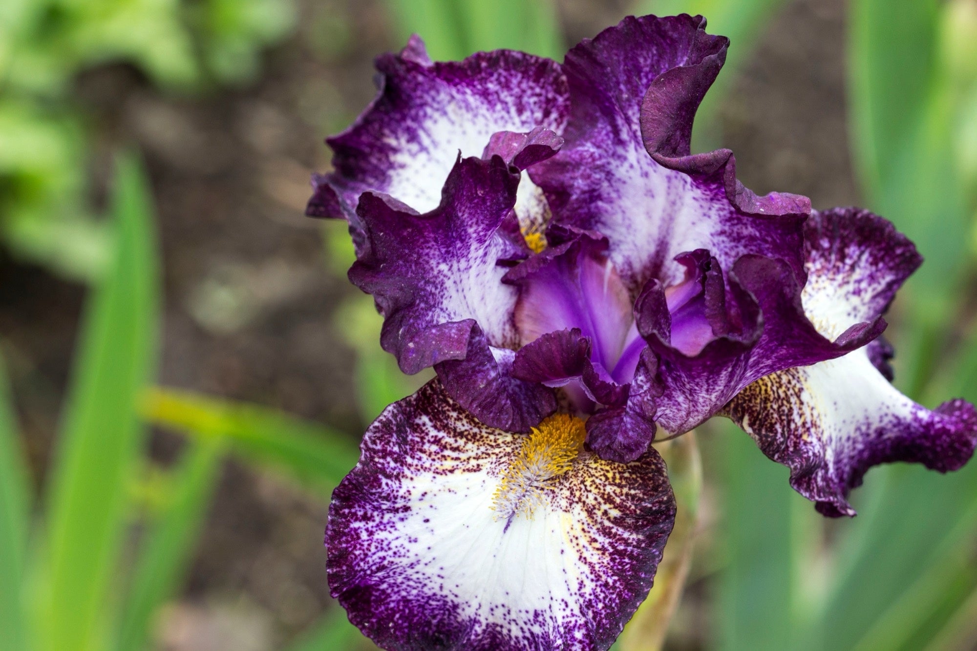 Iris germanica 'Prince of Burgundy' is an intermediate bearded iris cultivar introduced by David Niswonger in 1992. This midseason bloomer features deep burgundy standards with a white center, and falls that are white with a burgundy plicata edge. The flowers are adorned with white beards, very slightly tipped yellow, creating a striking and elegant appearance in the garden. Standing at approximately 56 cm (22 inches), it is well-suited for adding vertical interest and a touch of sophistication to garden beds and borders. Its vibrant colours and robust growth make it a standout addition to any garden design.