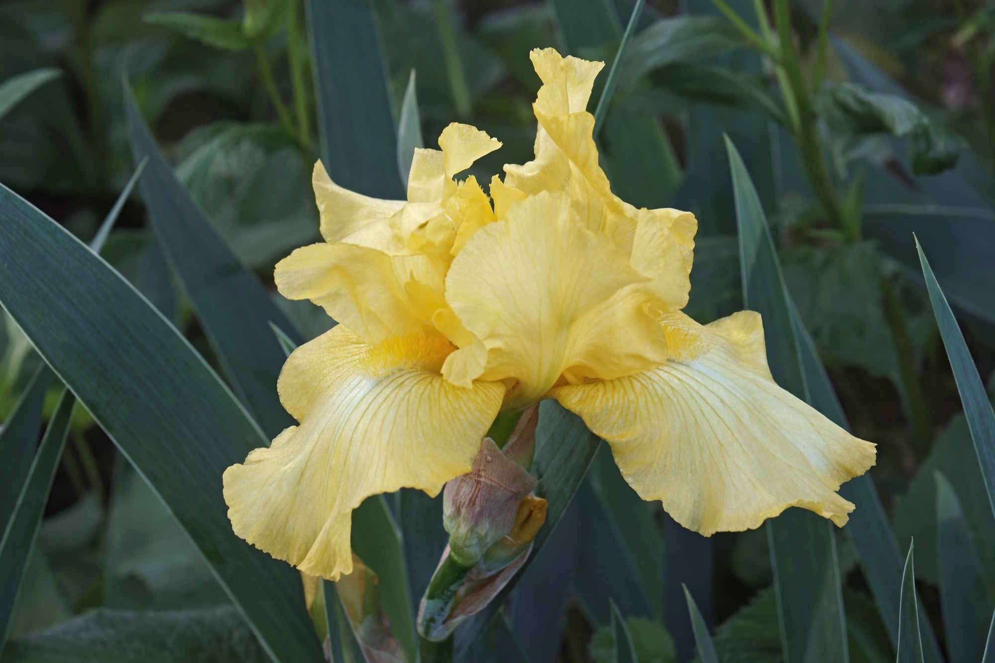 Iris germanica 'Summer Olympic' is a striking bearded iris cultivar that adds a touch of elegance to any garden. The flowers feature rich, velvety yellow standards and falls, creating a dramatic contrast that enhances the visual appeal of your outdoor space. These blooms are not only visually captivating but also emit a subtle fragrance, enriching the sensory experience of your garden.