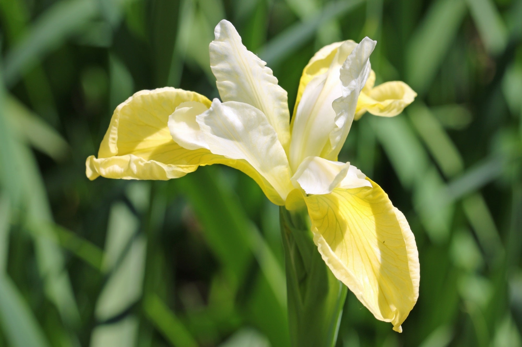 Iris sibirica 'Butter and Sugar' is a striking Siberian iris cultivar that adds a touch of elegance to any garden. The flowers feature creamy white standards and butter-yellow falls, both with greenish-yellow veins, creating a harmonious and eye-catching display. These blooms are not only visually captivating but also provide a unique aesthetic for borders and rock gardens.
