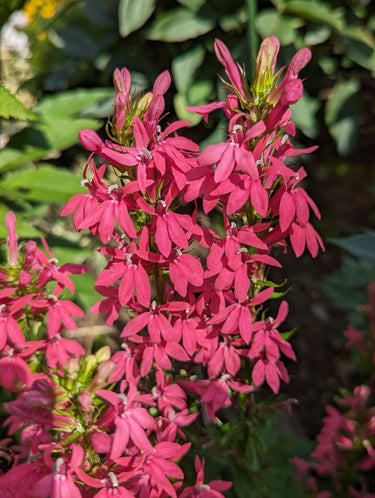 Lobelia speciosa 'Russian Princess' is a highly decorative perennial with deep bronze-purple foliage that sets the stage for its brilliant red blooms. The upright spikes of flowers create a vivid contrast against the dark leaves, giving the plant a regal and dramatic presence in the garden. Its showy flowers are a favourite of bees, butterflies, and other pollinators, making it not only striking but ecologically valuable.