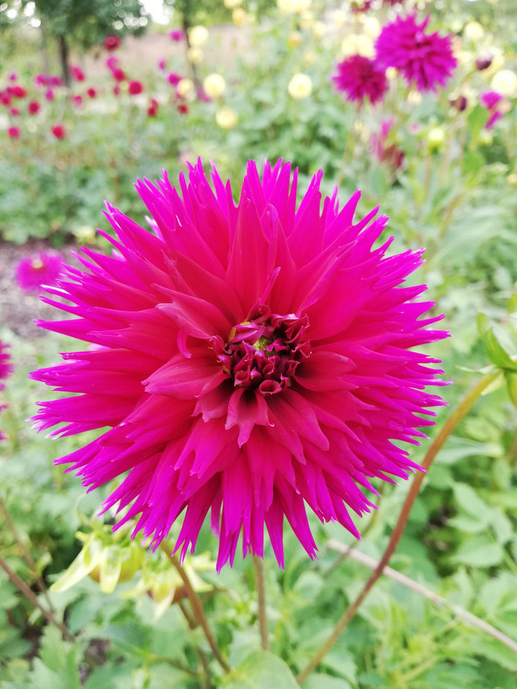 Dahlia ‘Ambition’ features large, vibrant blooms in striking red-orange hues with a classic fully double form. Upright and sturdy, it flowers from midsummer to autumn, adding bold, long-lasting colour to borders, beds, and cut flower displays.