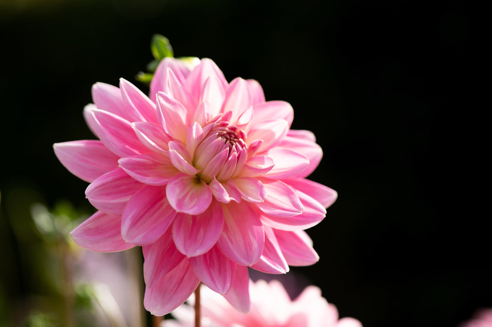 Dahlia ‘Gerrie Hoek’ features soft salmon-pink, waterlily-shaped blooms with a warm, glowing centre. Compact and free-flowering, it delivers elegant colour from midsummer to autumn. Ideal for borders, containers, and cutting, providing a classic, romantic touch to any garden display.
