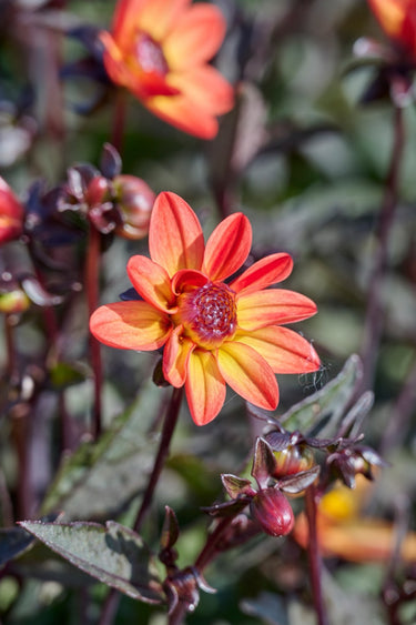 ‘Star Wars’ produces masses of small, starry single blooms in shades of pink‑orange, peach and apricot with yellow centres set against striking bronze‑flushed foliage. Its compact, bushy habit and tiny size make it ideal for containers, patios or the front of borders. Flowering from mid‑summer to autumn, it brings bright, pollinator‑friendly colour without needing much space.