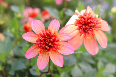 ‘Totally Tangerine’ is a bright, anemone‑flowered dahlia that glows with soft orange-pink petals and a rich, rust‑orange pincushion centre. Its vibrant blooms appear on upright stems that perform beautifully from midsummer through to the first frost, making it excellent for borders or pollinator‑friendly cut-flower beds.