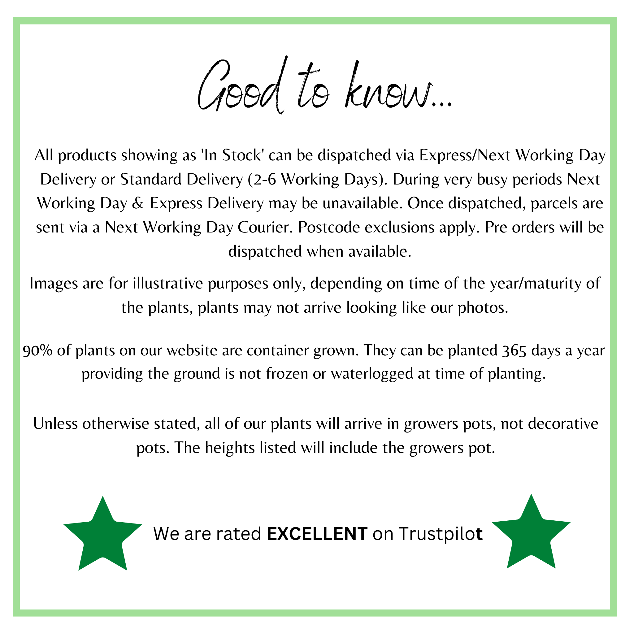 At Lincs Plants, we strive to provide fast and reliable shipping to ensure your plants arrive in perfect condition. We offer 1-3 day shipping through a variety of dispatch methods to suit your needs. Here’s an overview of our shipping process: