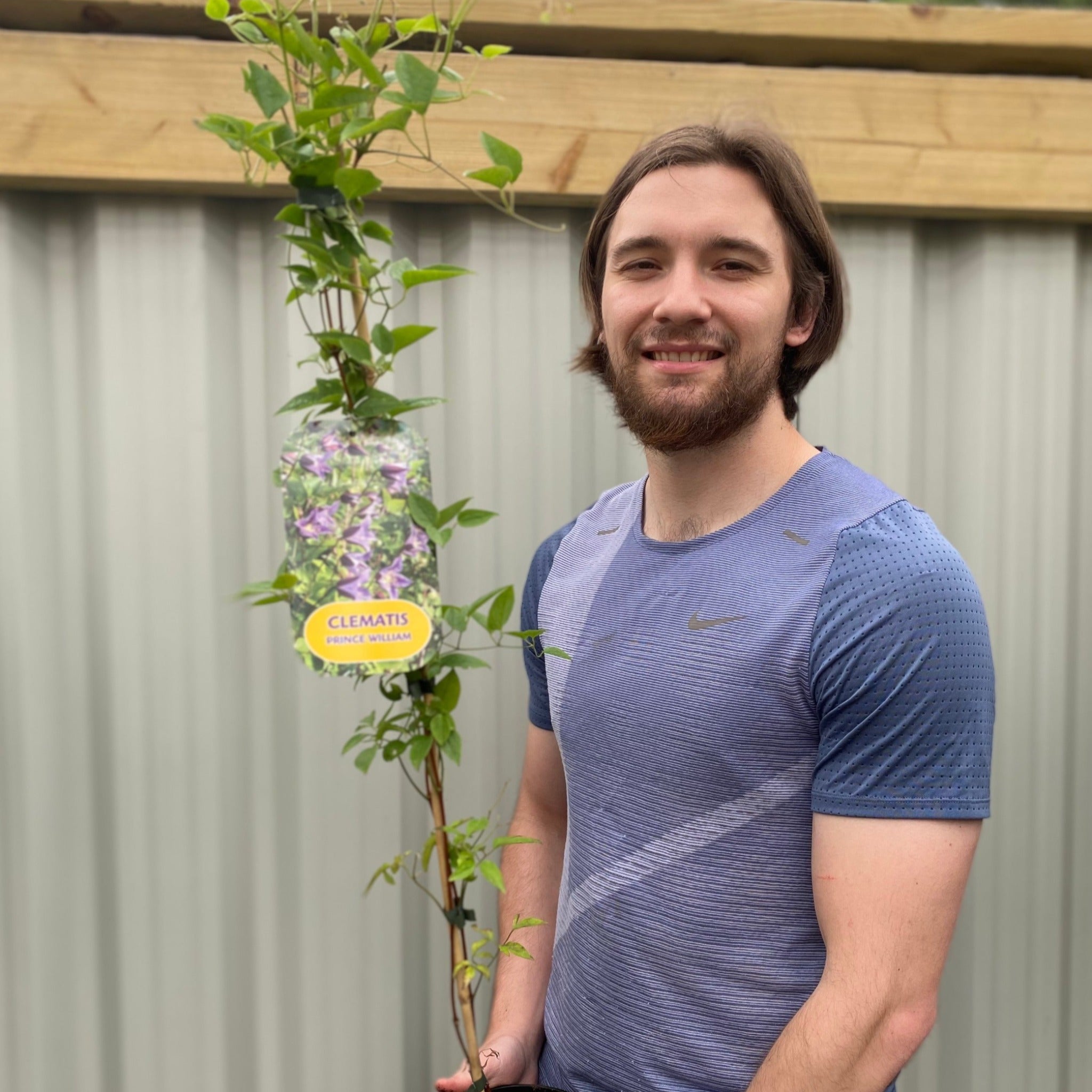 A beautiful Clematis which has a very unique colour combination, the flowers are various shades of purple. The flowers display a brilliant tulip shape but flatten as the bloom matures.