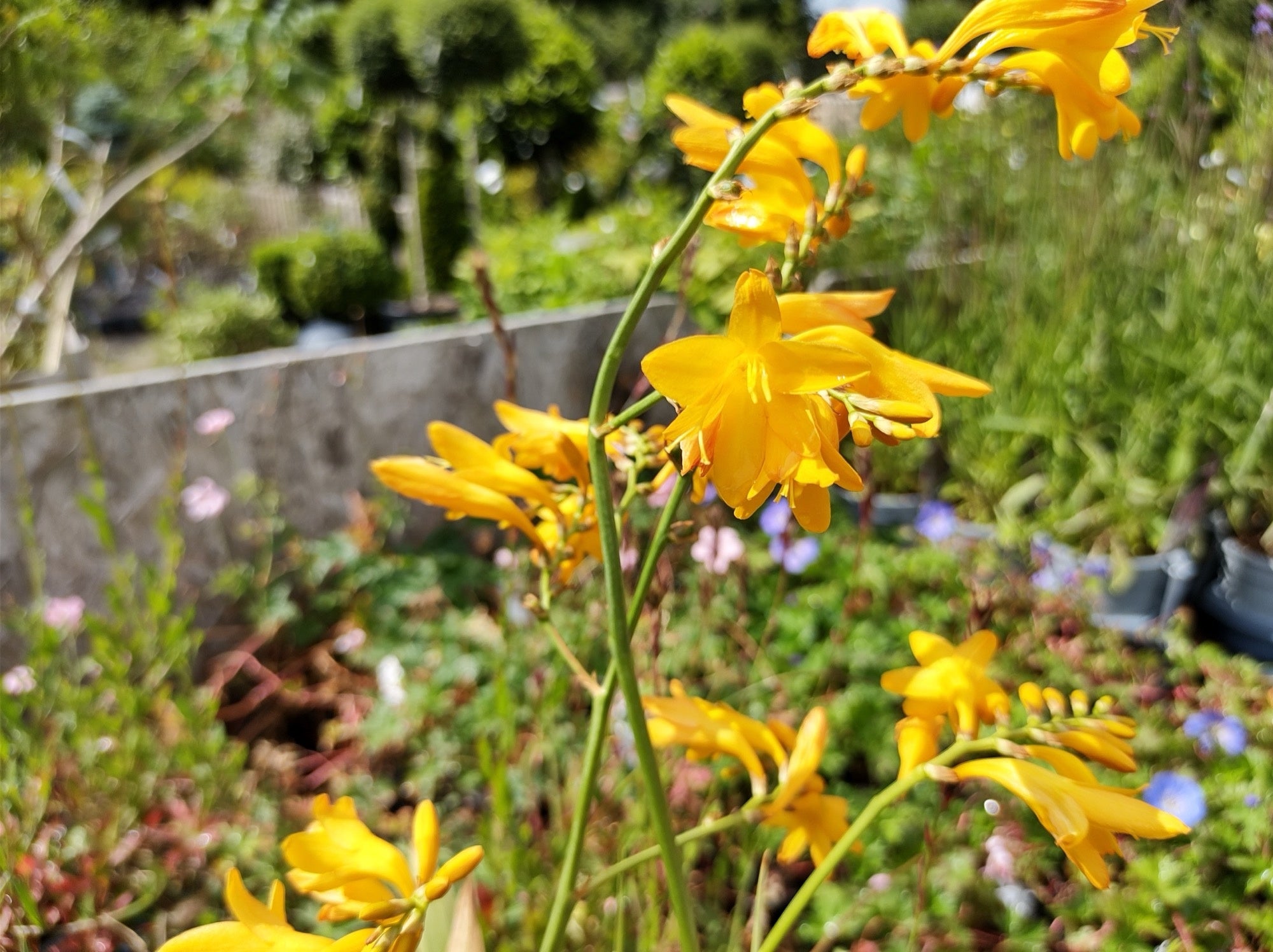 Crocosmia 'Honey Angels' is a compact and prolific cultivar that brings bright, cheerful colour to late summer and early autumn gardens. It produces sprays of small, trumpet-shaped yellow flowers with honey-toned throats, rising above clumps of narrow, sword-shaped green leaves. The blooms attract pollinators, including hummingbirds and bees, providing both visual and ecological value while many other perennials are fading.