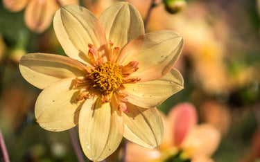 Dahlia ‘Yellow Sneezy’ is a cheerful, compact mignon dahlia that brightens any space with its pale lemon-yellow, single blooms. The flowers have a simple structure of 5–10 petals, giving them a clean, sunny look, and they sit atop a neat, bushy plant. It blooms reliably from mid-summer through to the first frosts, making it perfect for borders, patio pots, or low beds. Preferring full sun and well-drained, fertile soil, this variety is both low-maintenance and ideal for small gardens or containers.