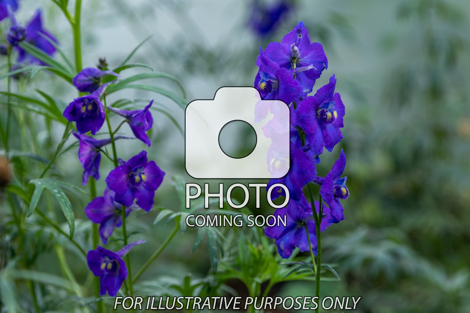 Delphinium 'Flamenco' is a striking perennial known for its dusky-pink double flowers and upright growth habit. The frilly, multi-petalled blooms are carried on tall, sturdy stems, providing strong vertical interest in summer borders. The flowers create a vibrant display that contrasts beautifully with the dark green, lobed foliage, which also supports pollinators and adds year-round textural appeal. Its dramatic flower spikes make it a standout feature in cottage gardens, mixed perennial beds, and formal borders alike, adding both height and structure to the planting scheme.