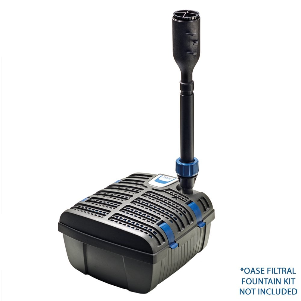 The filter component includes a coarse and fine filter foam, as well as bio-surface elements and ceramic media to ensure both mechanical and biological filtration. Filter maintenance is straightforward thanks to the new easy access clips which allow quick removal of the lid. The Filtral UVC 1500 has an integral 5w UVC which works alongside the filter to eliminate and remove green water algae, for clear and healthy water. The integrated 750LPH pump powers the system and can also be used to create a small fountain display, run a waterfall or water feature and can also be used to increase aeration when used alongside the Filtral Fountain or Aeration Set (both available separately).