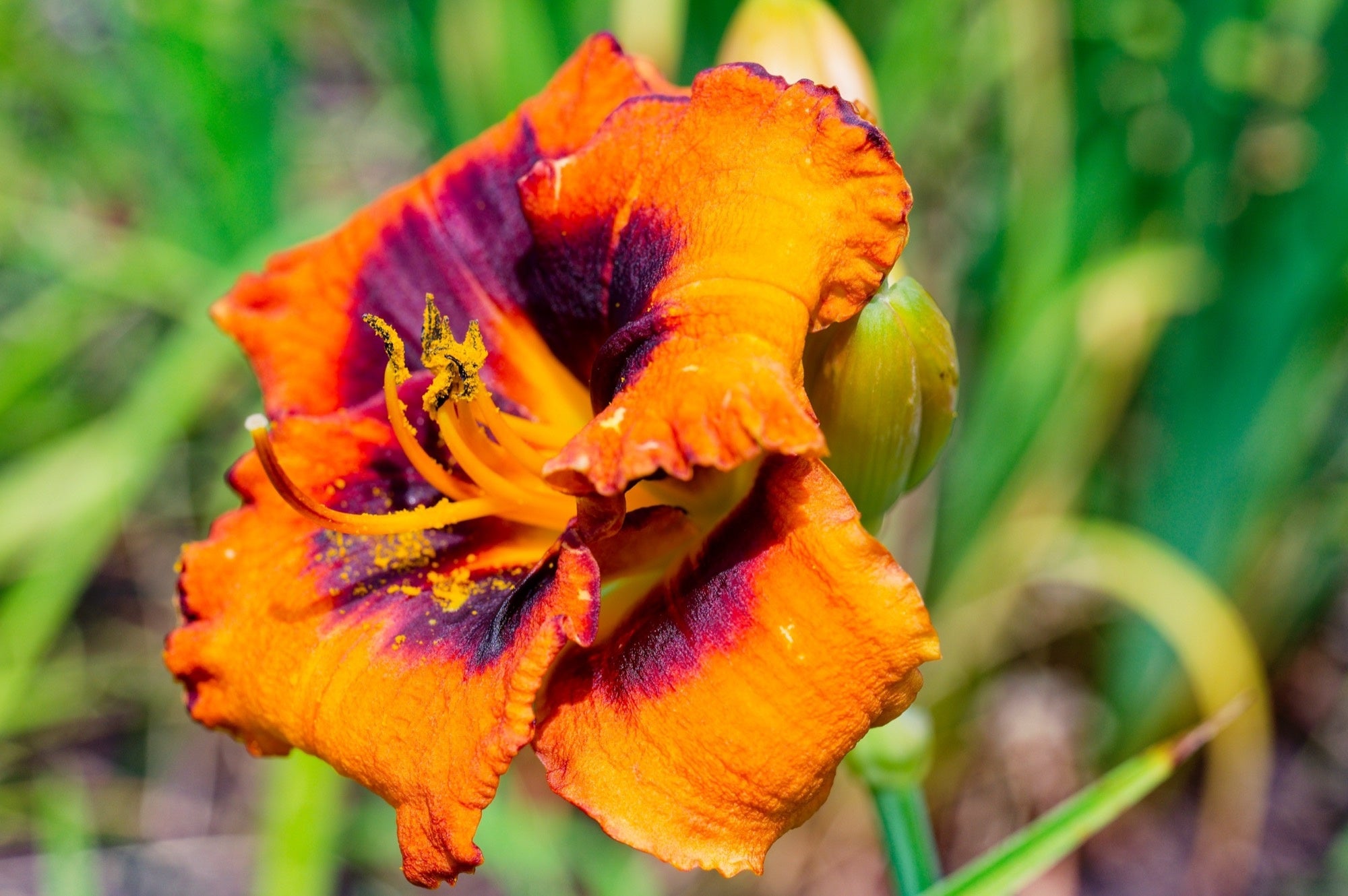 Hemerocallis 'Madeline Nettles Eyes' is a captivating daylily cultivar known for its vibrant, peachy-orange flowers adorned with a deep purple eyezone and a contrasting yellow-green throat. Each bloom measures approximately 8 cm across and is borne on sturdy, semi-evergreen foliage that provides structure and texture throughout the growing season.