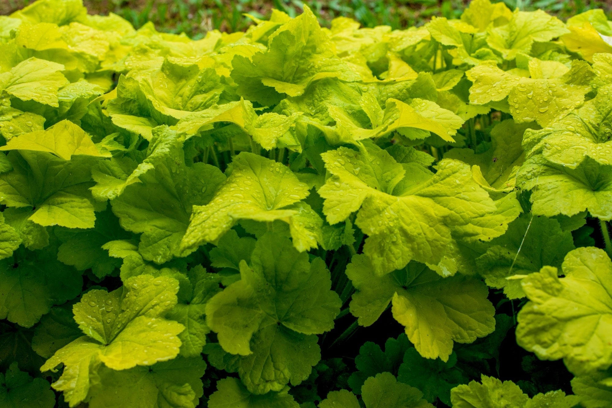 Heuchera 'Citronelle' is an evergreen perennial admired for its vibrant, lime-green foliage that forms compact, rounded clumps. In late spring to early summer, delicate sprays of small, bell-shaped flowers rise above the leaves, adding airy texture and seasonal interest. Its bright leaf colour and tidy habit make it ideal for borders, rockeries, woodland gardens, or container plantings.