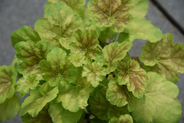 Heuchera 'Miracle' is an evergreen perennial admired for its rich, burgundy-red foliage that forms compact, rounded clumps. In late spring to early summer, delicate sprays of small, bell-shaped flowers rise above the leaves, adding light texture and seasonal interest. Its bold leaf colour and tidy habit make it ideal for borders, rockeries, woodland gardens, or container plantings.