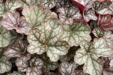Heuchera 'Regina' is an evergreen perennial celebrated for its rich, dark purple foliage that forms compact, rounded clumps. In late spring to early summer, delicate sprays of small, bell-shaped flowers rise above the leaves, adding light, airy texture and seasonal interest. Its bold leaf colour and tidy habit make it ideal for borders, rockeries, woodland gardens, or container plantings.