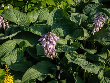 Thriving in partial to full shade with moist, well-drained soil, 'Blue Umbrellas' is hardy, low-maintenance, and reliable. The ornamental foliage maintains its visual appeal throughout the growing season, while the summer flowers enhance garden biodiversity. Its combination of substantial leaf texture, bold blue-green colouring, and seasonal blooms makes it a versatile and eye-catching choice for shaded planting schemes.