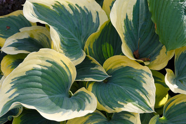 Hosta ‘Liberty’ is a grand and impressive perennial that brings bold variegation and structure to shaded gardens. Its large, broadly heart-shaped leaves are blue-green in the centre, edged with a very broad margin of golden yellow which, as the season progresses, gradually fades to creamy white. This dramatic contrast gives it strong visual appeal, making it an excellent focal point, especially in borders or amongst other shade-loving plants.