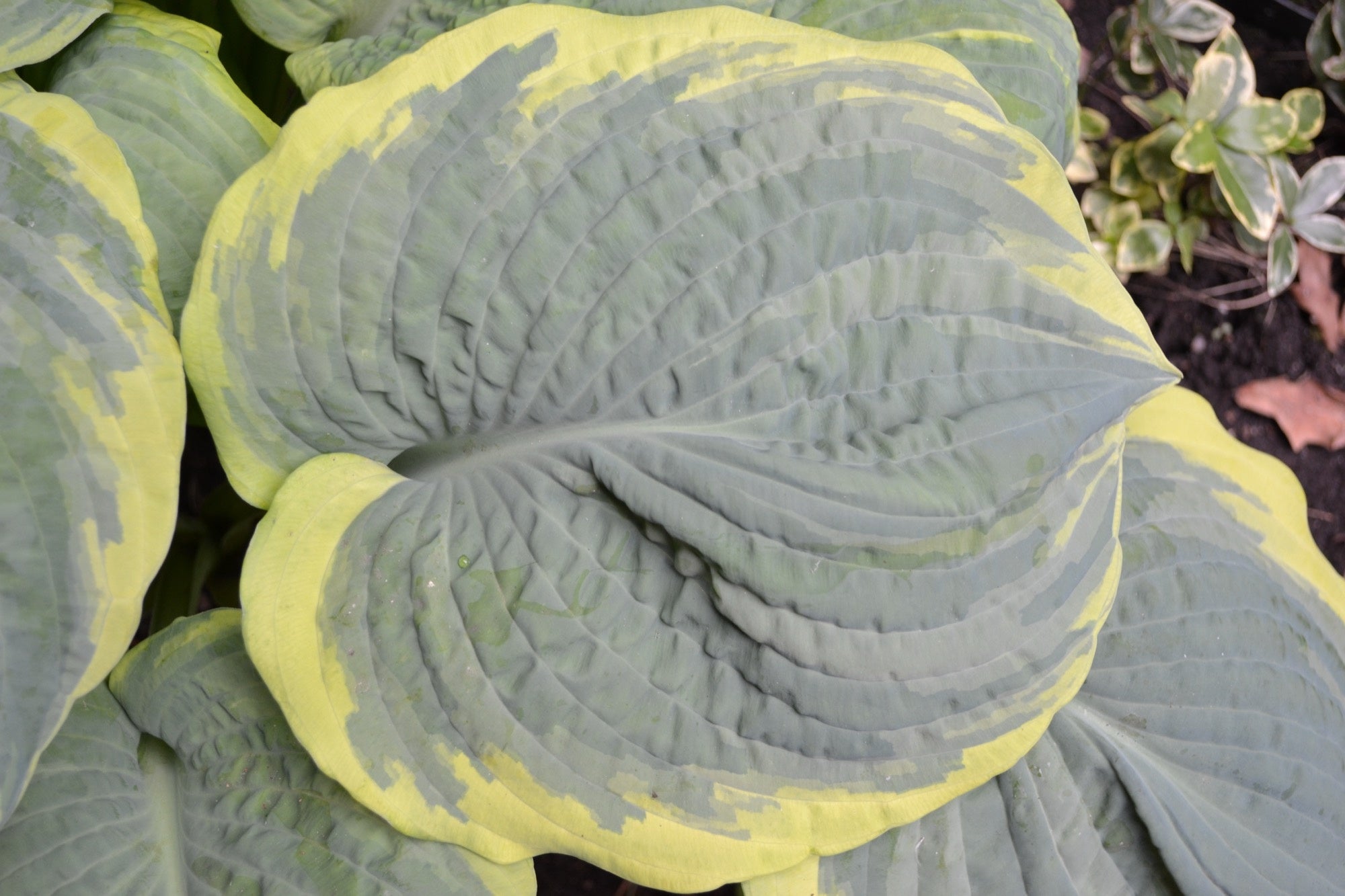 Hosta ‘Midwest Magic’ is a striking perennial that brings bold colour and texture to shaded garden areas. Its heart-shaped, corrugated leaves display a rich green centre with wide creamy-yellow margins that gradually lighten as the season progresses, creating a glowing contrast that brightens darker corners of the garden. The foliage forms a dense, rounded mound, giving structure and visual interest even when the plant is not in bloom. The slightly wavy leaf edges add additional texture, making this hosta a standout in mixed borders, woodland gardens, or containers.