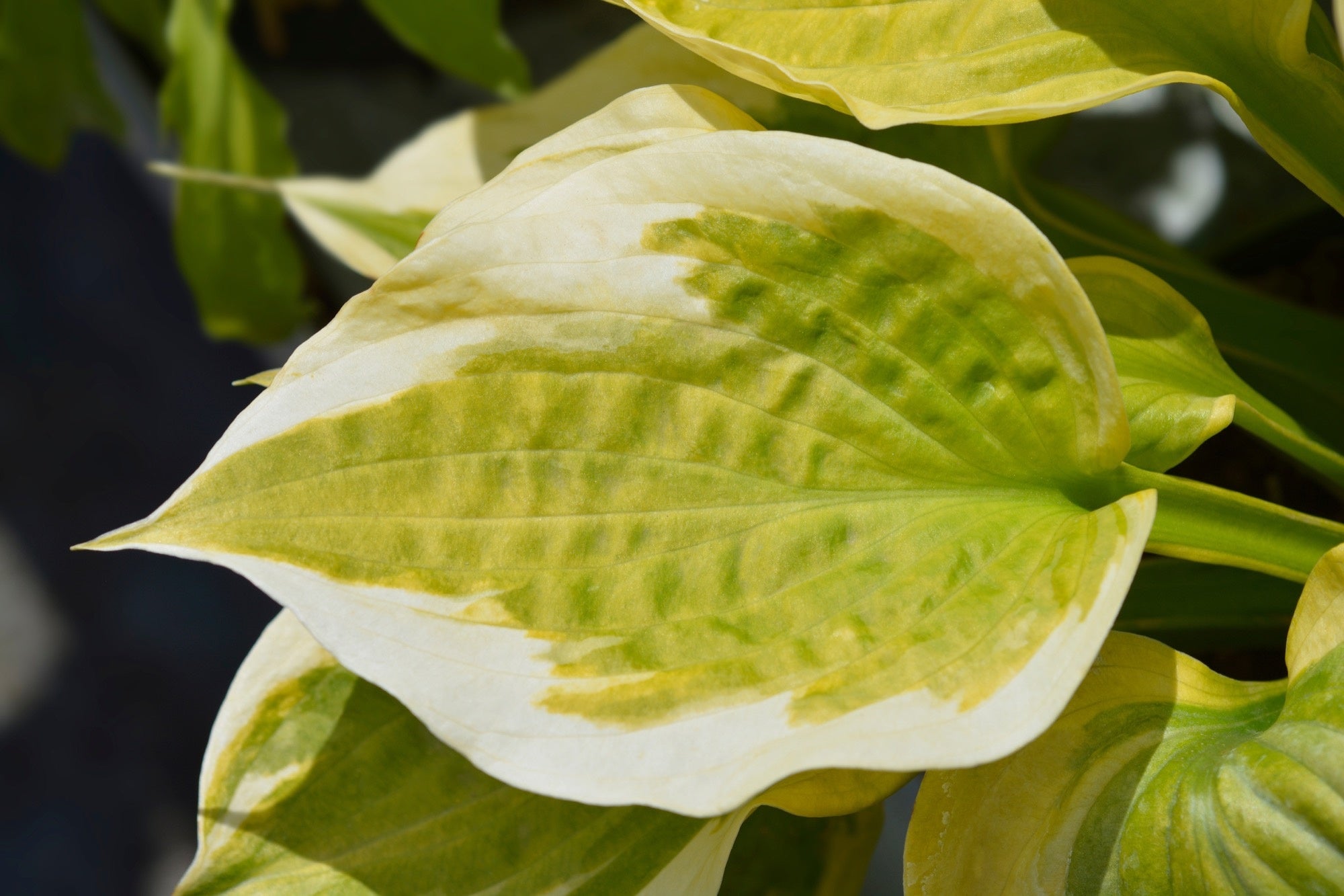 Hosta 'Spring Morning' is a striking perennial renowned for its bold, variegated foliage and refined habit. The large, heart-shaped leaves are thick, slightly corrugated, and slightly cupped, forming a dense mound that adds texture and colour to shaded or partially shaded gardens. The centres are light yellow-green, transitioning to creamy white margins, creating a striking contrast. In mid to late summer, tall scapes emerge carrying pale lavender flowers, providing vertical interest and attracting pollinators.