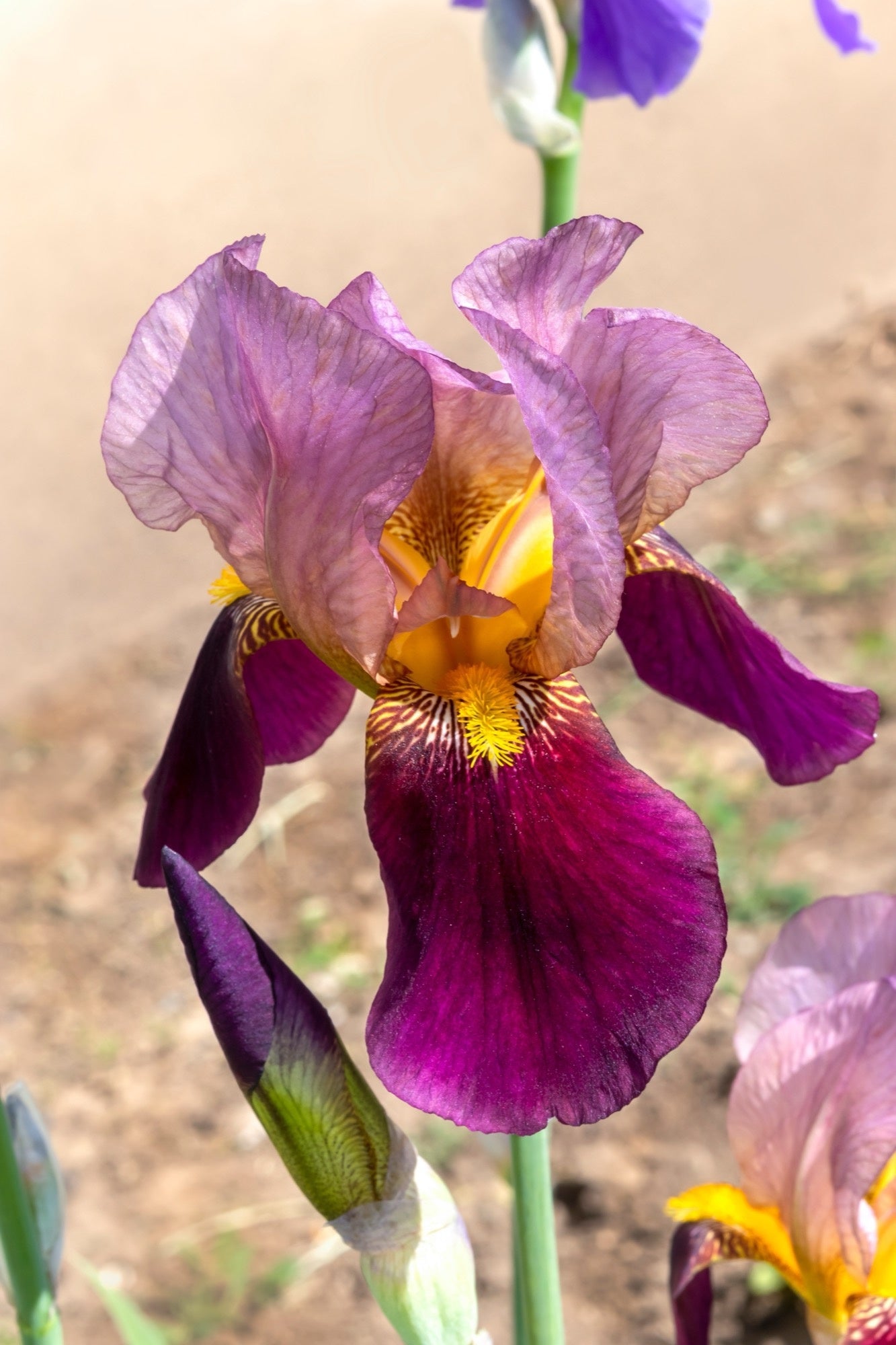 Iris germanica 'Wine and Roses' is a captivating bearded iris cultivar that adds a touch of elegance to any garden. The flowers feature soft rose-pink standards and deep wine-purple falls with rose-pink edges, creating a striking contrast that enhances the visual appeal of your outdoor space. These blooms are not only visually captivating but also emit a subtle fragrance, enriching the sensory experience of your garden.