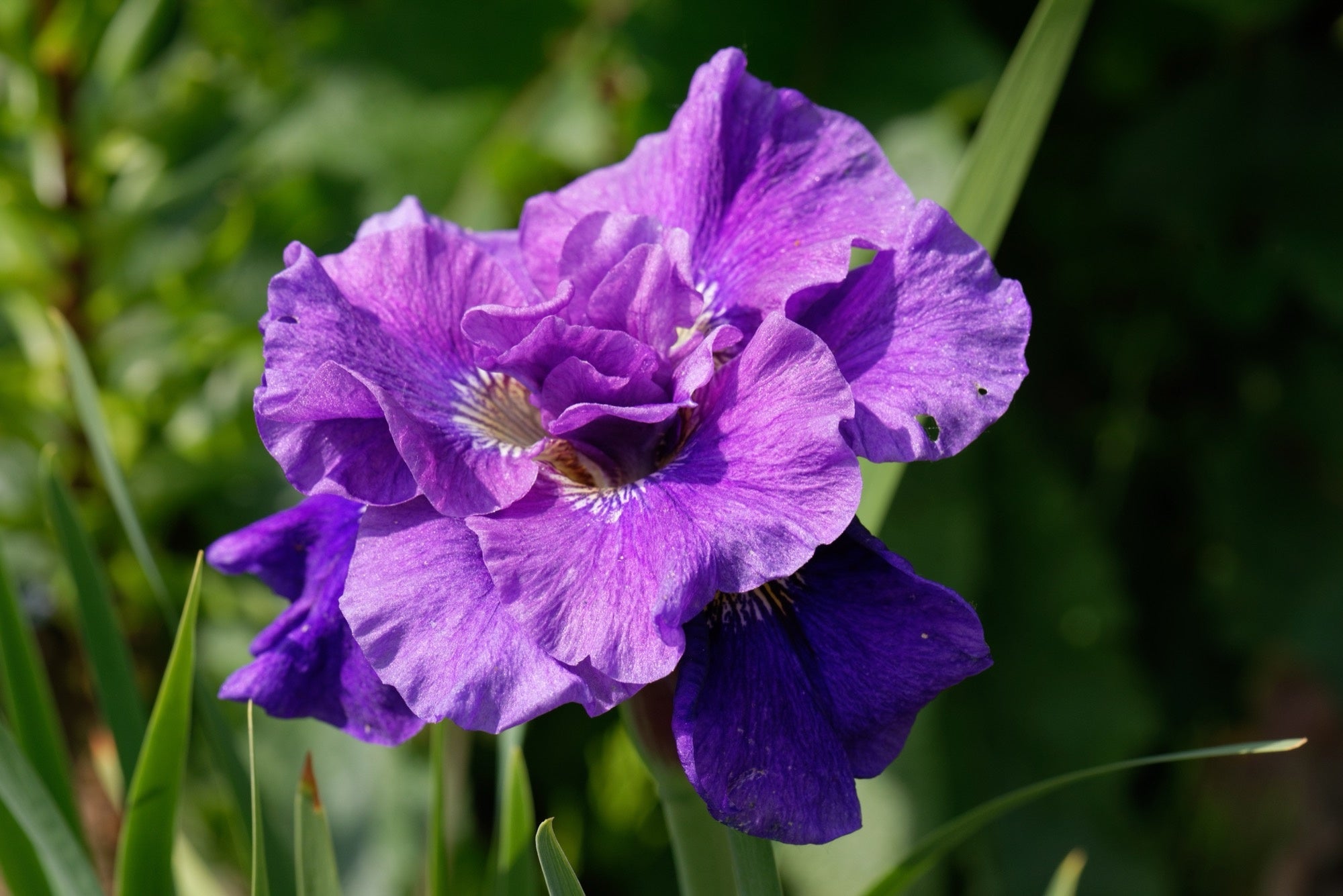Iris sibirica 'Concord Crush' is a striking Siberian iris cultivar that adds depth and drama to any garden. The flowers feature deep violet-blue, heavily ruffled double petals with glowing yellow signals at the base, creating a captivating contrast that draws the eye. The upright, slender foliage adds texture and structure, enhancing borders, perennial beds, and naturalistic plantings. These blooms are not only visually stunning but also provide a gentle fragrance that enriches the garden experience.