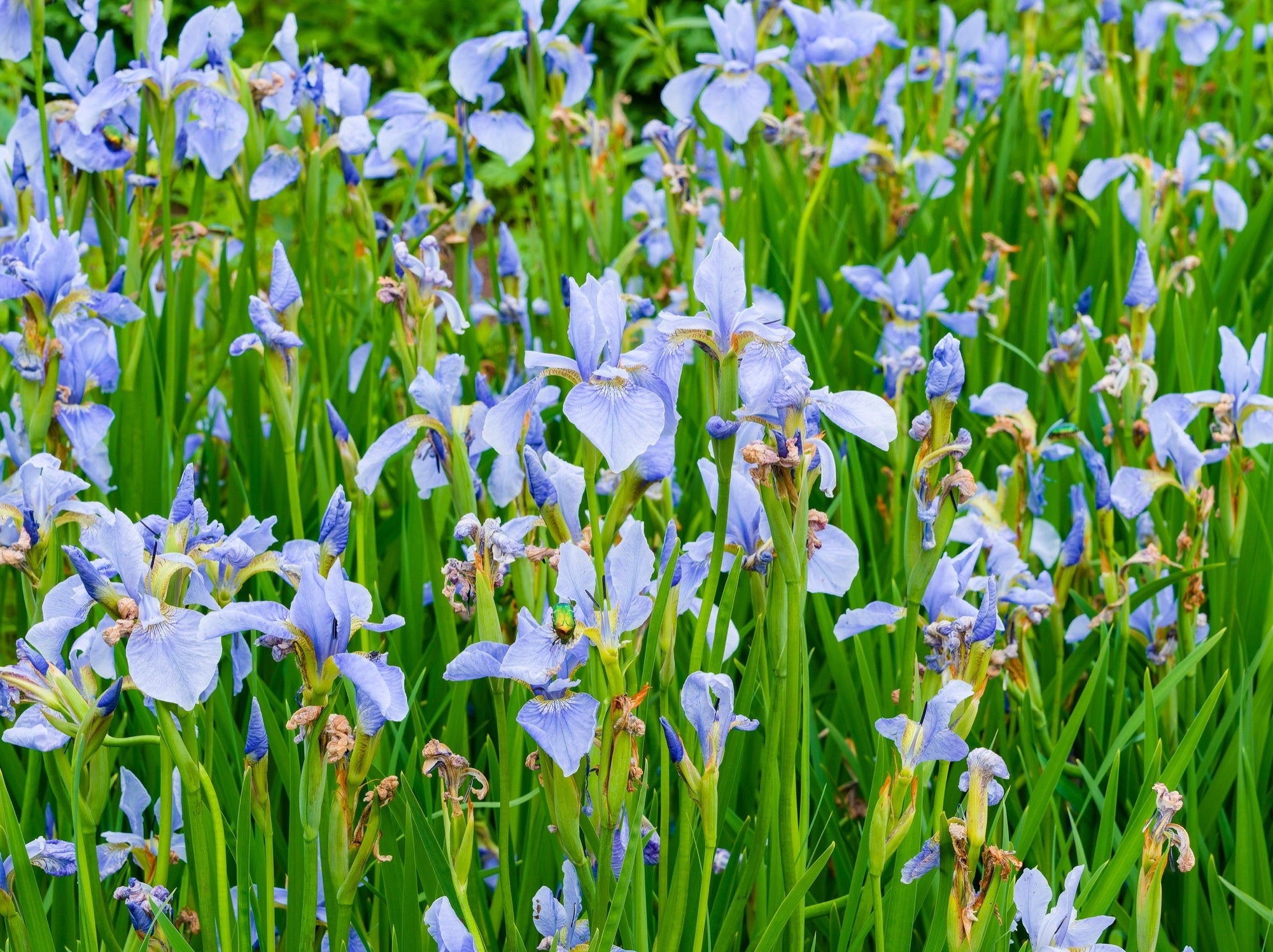 Iris sibirica 'Perry's Blue' is a graceful Siberian iris that brings elegance and cool-toned beauty to the garden. Its blooms are soft to medium blue with lightly ruffled petals and a subtle golden-yellow signal at the base of the falls, creating a gentle yet attractive contrast. The upright clumps of slender green foliage provide structure and complement the airy, graceful flowers. Planted in groups, this variety produces a serene and visually appealing display, ideal for borders, naturalistic plantings, or near water features.