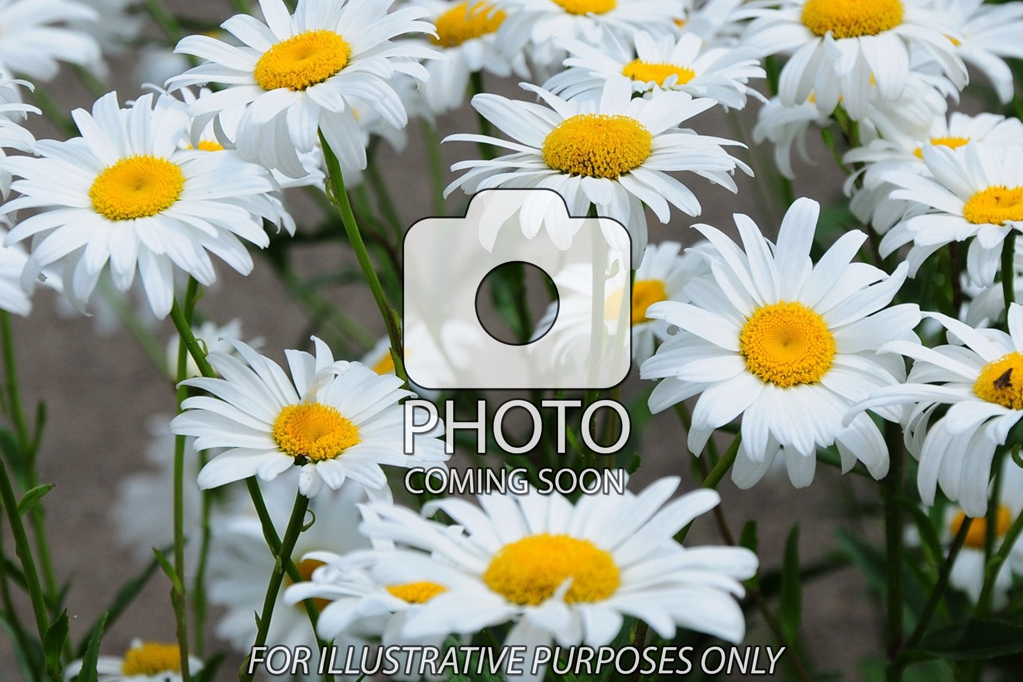 Leucanthemum × superbum 'Laspider' is a striking perennial daisy featuring large white petals with golden yellow centres. The upright blooms rise above tidy clumps of green, toothed foliage, creating a bold and cheerful display in borders, cottage gardens, and mixed perennial beds. Its long-lasting flowers and structured habit make it an excellent choice for adding continuous summer colour and visual interest to sunny garden spaces.