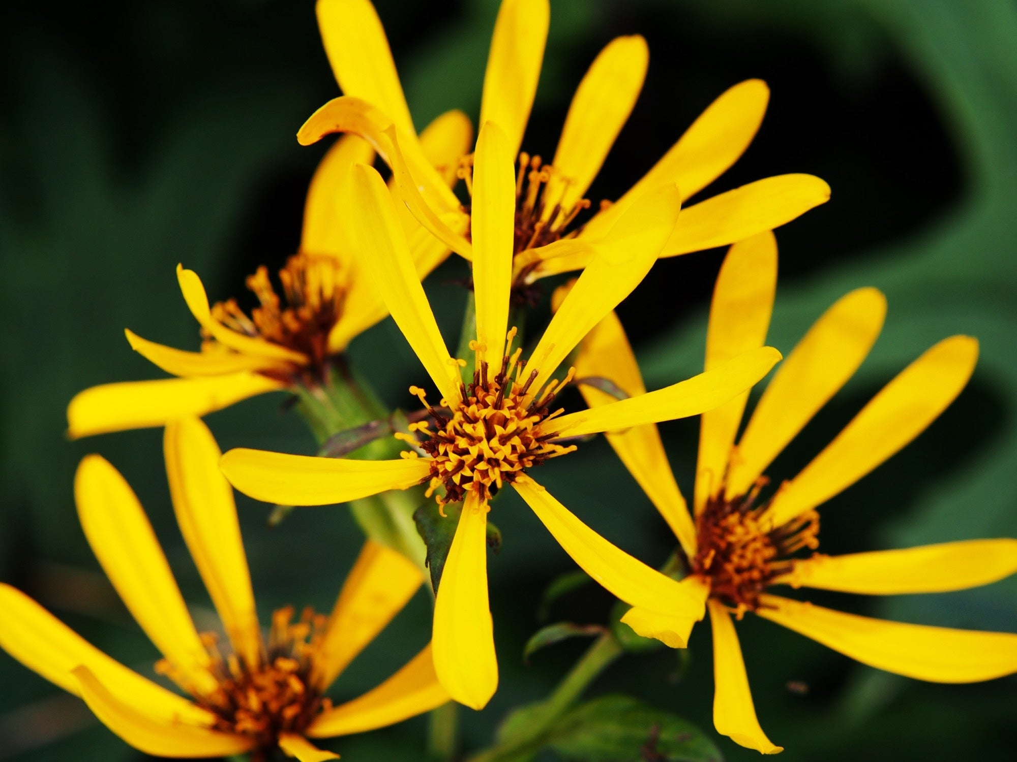 Ligularia hessei is a bold perennial featuring large, rounded, dark green leaves that form a striking clump in shaded or partially shaded garden areas. Its upright stems produce clusters of bright yellow flowers, adding vertical interest and vibrant summer colour. The blooms attract pollinators such as bees and butterflies, enhancing the ecological value of woodland borders, damp garden beds, and shaded planting schemes.