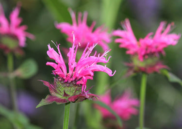 Monarda 'Marshall’s Delight' is an elegant perennial that brings clear pink flower heads and a softly aromatic presence to UK gardens. The blooms form relatively rounded clusters above pale green bracts, appearing from mid-summer and creating an eye-catching display. Its glossy foliage adds textural contrast, and this variety has been bred to have some mildew resistance, meaning with sensible care (good airflow, not overly damp soil) it can perform well without constant fuss.
