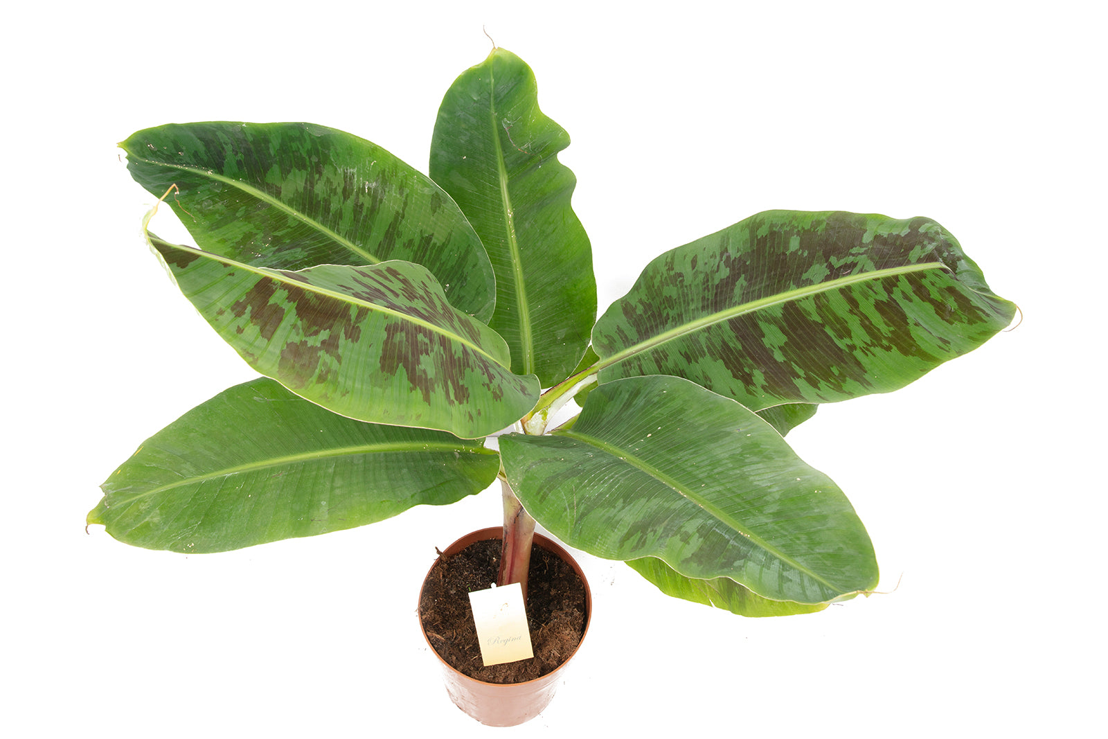The Musa ‘Regina’ is an ornamental banana cultivar prized for its lush, tropical foliage and upright growth habit. Native to Southeast Asia, it is grown primarily for its large, vibrant green leaves, which create a dramatic tropical effect in gardens, patios, or conservatories. ‘Regina’ produces a strong, sturdy pseudostem and can form an impressive architectural focal point, making it ideal for exotic-themed planting schemes or container growing in the UK.