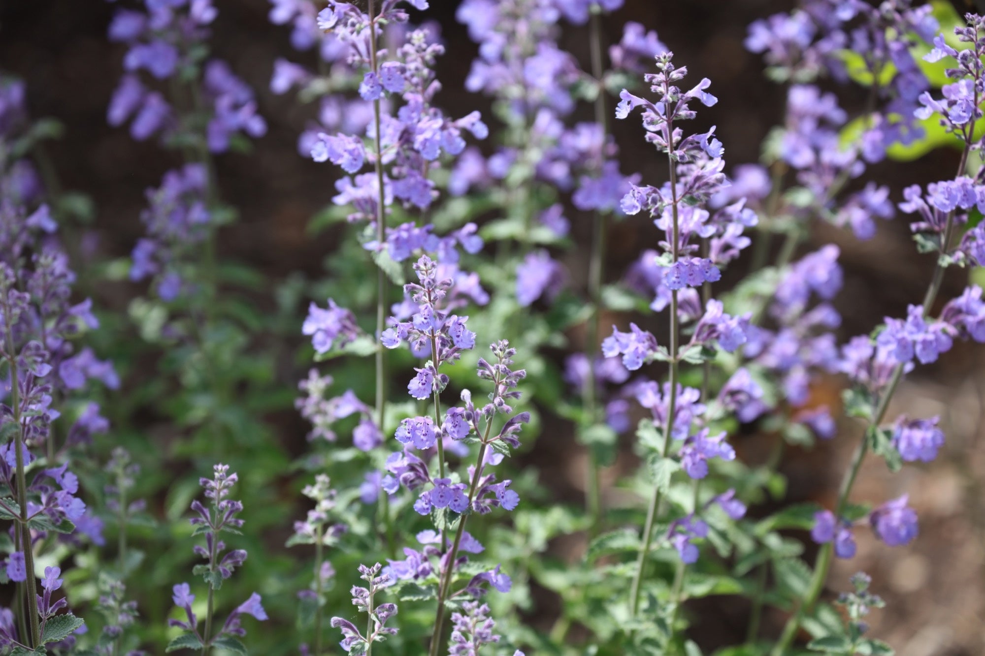 Nepeta faassenii, commonly known as garden catmint, is a hardy perennial native to the Caucasus region. This compact, clump-forming plant is prized for its aromatic, grey-green foliage and profusion of small, tubular, light violet-blue flowers that bloom from late spring through to early autumn. The flowers are borne in terminal whorls along ascending stems, attracting a variety of pollinators, including bees and butterflies. The aromatic leaves emit a pleasant fragrance when brushed or crushed, adding sensory interest to the garden.