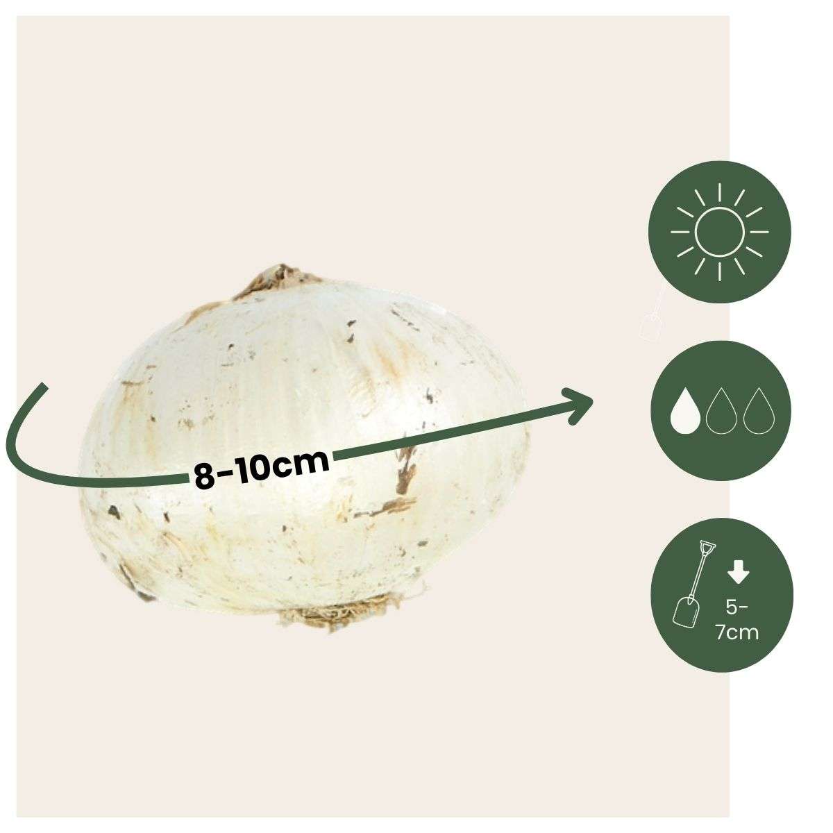 The flower bulbs have a circumference of approximately 10 cm upon delivery.