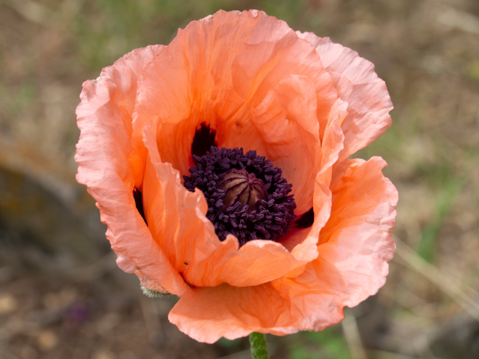 Papaver orientale ‘Salmon Glow’ is a striking oriental poppy, admired for its large, soft salmon-pink blooms with a subtle darker central blotch. The ruffled, cup-shaped flowers rise on tall, sturdy stems above coarse, hairy green foliage, creating an elegant and eye-catching display in early summer borders. Its gentle, warm colour and textured petals make it a standout in cottage gardens, mixed perennial beds, and smaller planting schemes where a touch of delicate summer colour is desired.
