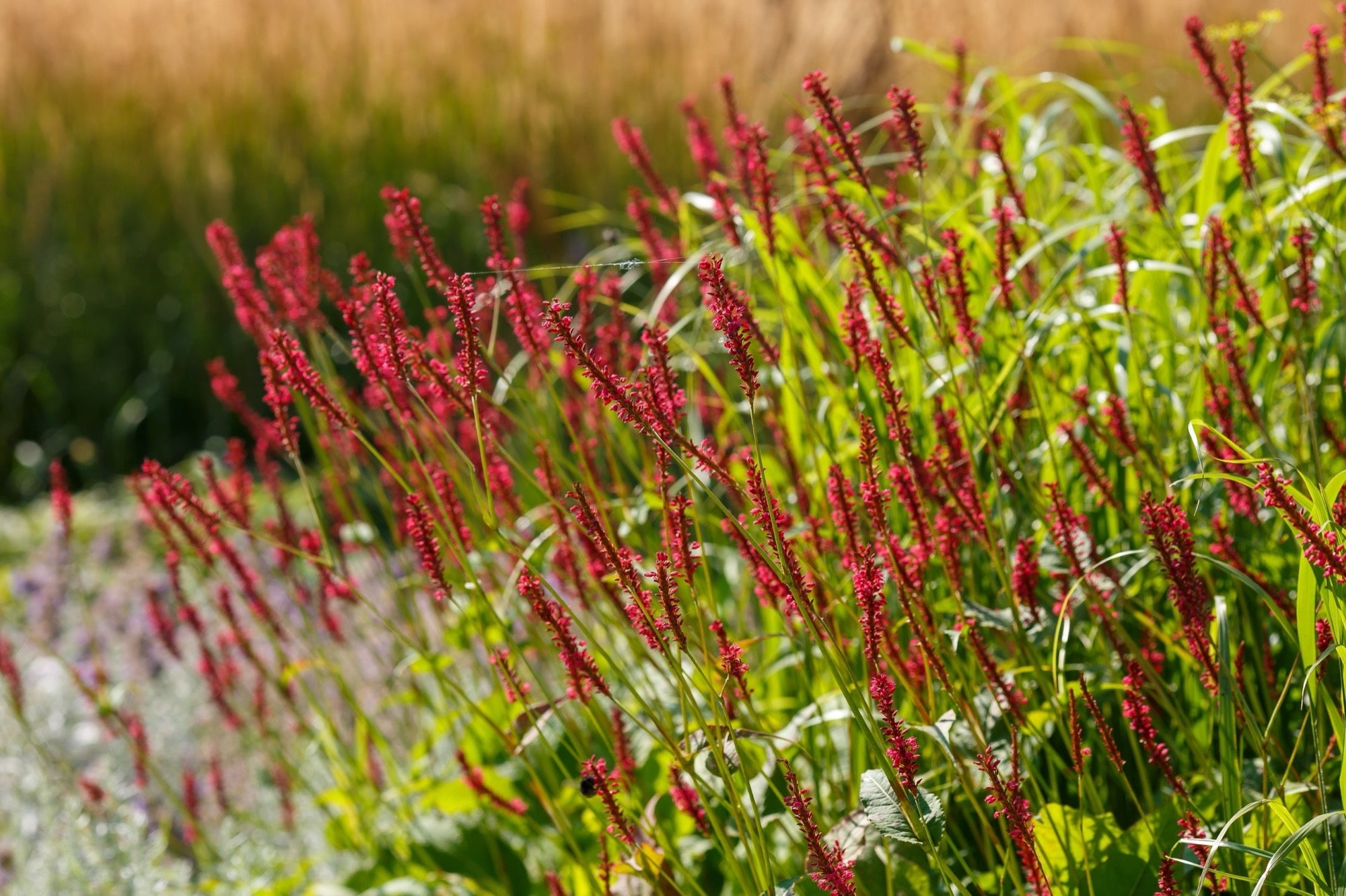 Thriving in moist, fertile soil, this hardy perennial prefers full sun to partial shade and forms strong, vigorous clumps that require minimal maintenance. Cutting back old stems in late winter encourages fresh spring growth and keeps the plant tidy. Persicaria amplexicaulis ‘Taurus’ is a reliable, long-flowering, and visually impactful choice for adding structure, colour, and wildlife support to UK gardens.