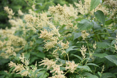 Persicaria polymorpha is a striking perennial valued for its tall, arching panicles of creamy-white flowers that appear from late summer into autumn. The large, green foliage forms dense clumps that provide a lush backdrop, while the impressive flower spikes add height, movement, and a soft architectural element to borders, naturalistic plantings, or wildlife gardens. Its long flowering period attracts bees, butterflies, and other pollinators, enhancing both ornamental and ecological value.