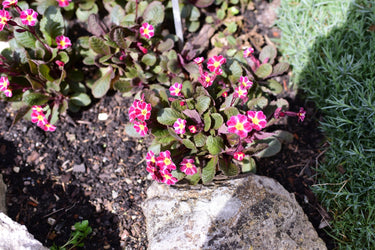 Primula 'Dark Rosaleen' is a charming perennial featuring clusters of rich, deep rose-pink flowers that bloom in spring above a neat rosette of fresh green foliage. The vibrant flowers create a striking display in borders, rockeries, or containers, adding colour and structure to spring gardens. Its compact habit makes it ideal for front-of-border planting or mixed container displays. This cultivar is attractive to pollinators, including bees, and adds ecological value while providing long-lasting ornamental interest.