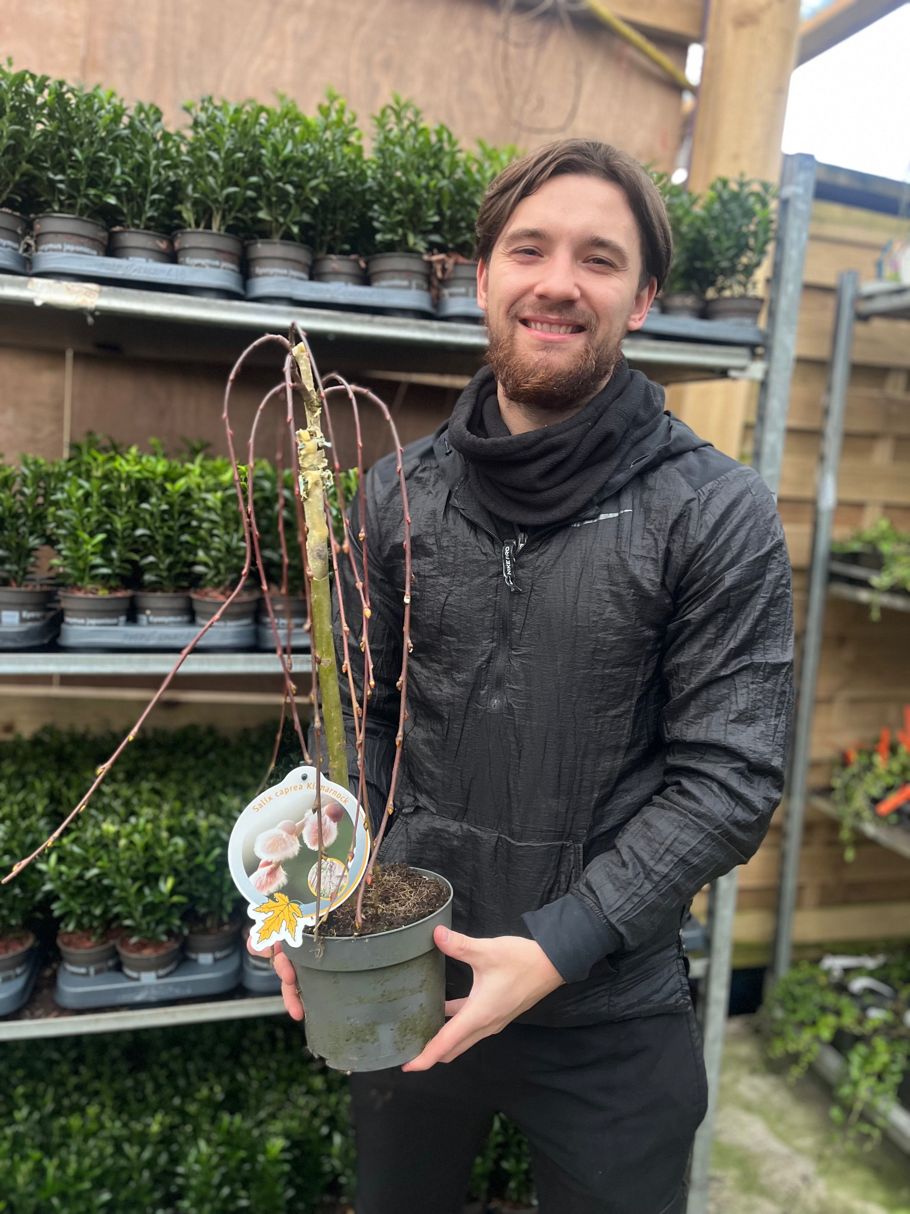 A fabulous dwarf tree which forms a dome shape. Firstly a waterfall of beautiful catkins will appear in the spring - furry buds which open into bright, yellow catkins. This is then followed by a waterfall of green foliage.