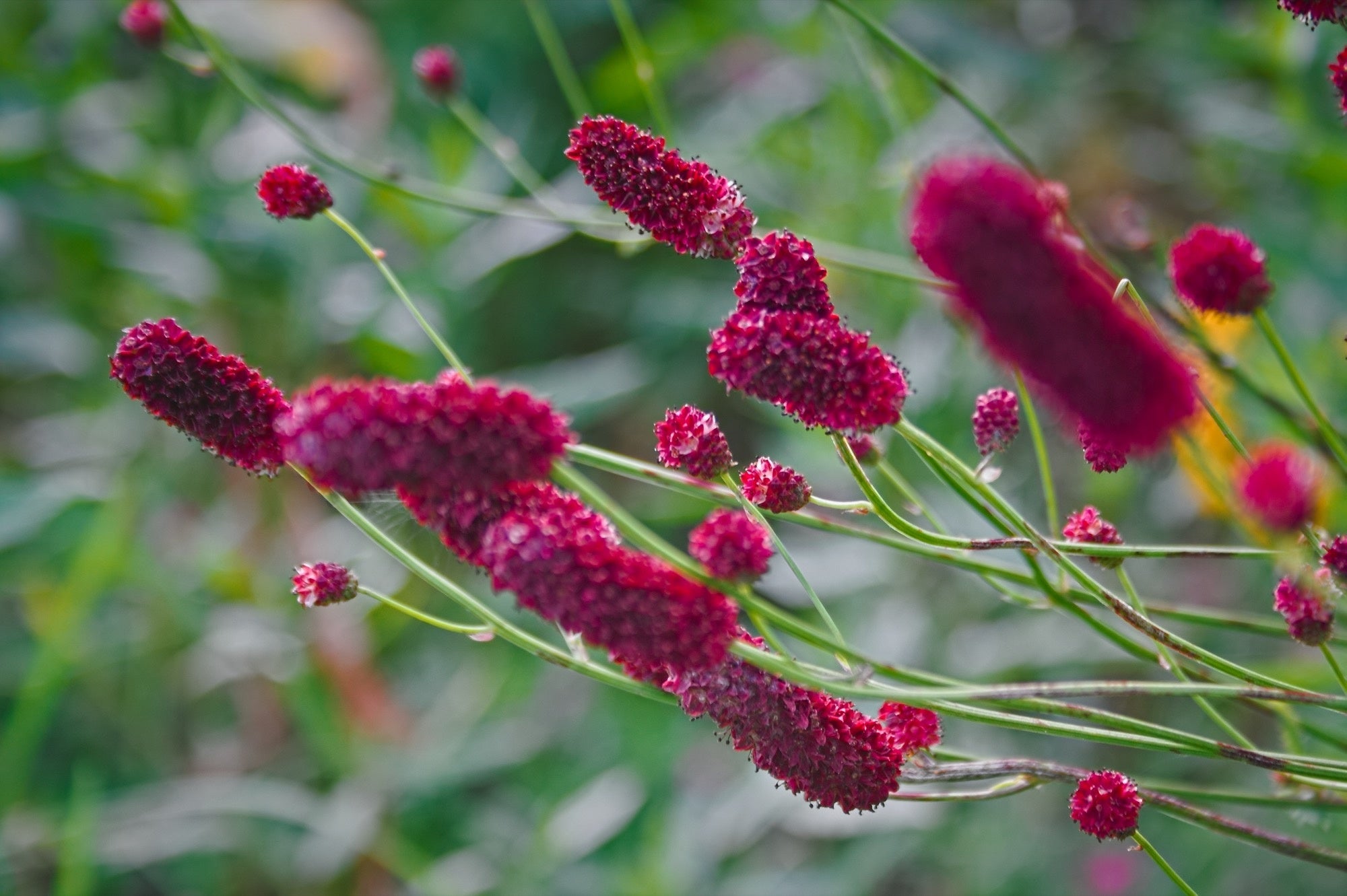Sanguisorba officinalis is a clump-forming perennial with finely divided green foliage and upright spikes of deep red flowers. Blooming from midsummer into early autumn, it provides bold colour and vertical interest in borders, cottage gardens, and wildlife-friendly plantings. Its nectar-rich flowers attract bees, butterflies, and other pollinators, enhancing ecological value. The upright, arching habit makes it ideal for mixed borders, low-maintenance schemes, or naturalistic and meadow-style plantings.