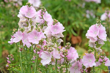 Sidalcea 'Little Princess' is a clump-forming perennial valued for its lush green foliage and spikes of soft pink cup-shaped flowers that bloom from mid to late summer. The upright stems rise above the foliage, creating a delicate and airy display that adds charm and texture to borders, cottage gardens, and naturalised plantings. The long-lasting blooms attract pollinators and provide extended seasonal interest.