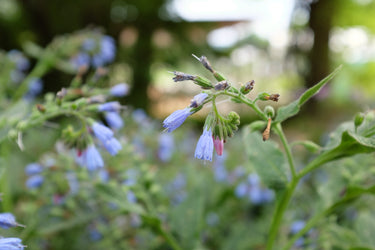 Symphytum azureum is a vigorous perennial with large, rough-textured, dark green leaves forming a dense clump. From late spring to early summer, it produces spikes of vibrant blue, bell-shaped flowers that rise above the foliage, adding colour and architectural interest to borders, woodland gardens, and naturalistic plantings. Its attractive blooms also support pollinators such as bees, making it both ornamental and ecologically valuable.