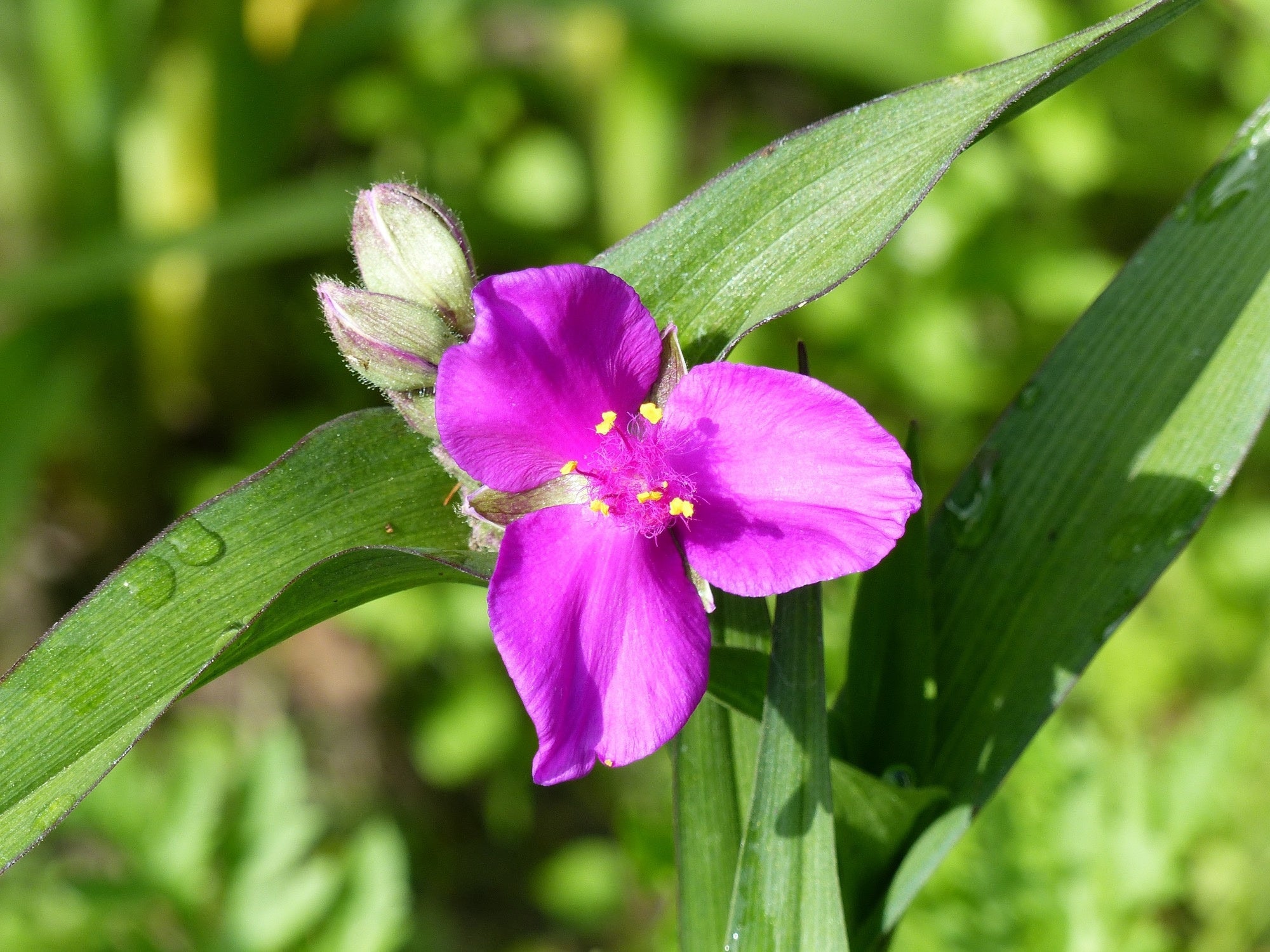 Tradescantia ‘Karminglut’ is a vibrant and striking perennial that lights up the garden with its carmine-red flowers over lush, grass-like foliage. The leaves are narrow, lance-shaped and blue-green, forming a neat, upright clump that provides year-round texture and colour. During the summer months it bursts into bloom, with triangular, three-petalled blossoms in deep pink to magenta-carmine, each with bright yellow stamens, appearing in succession to give a long, showy display. Its vivid flowers are attractive to bees and other pollinators, adding both beauty and ecological value to the garden.