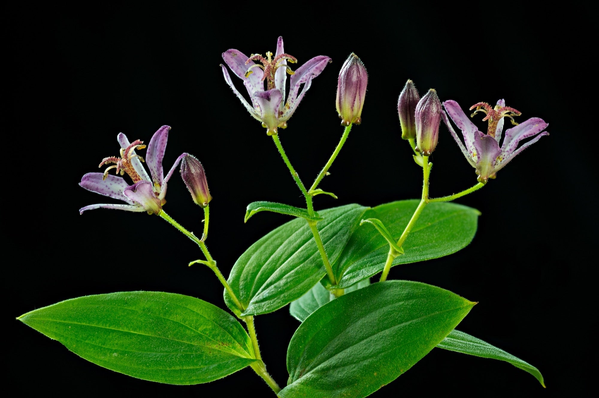 Tricyrtis formosana 'Stolonifera' is a shade-loving perennial that adds a touch of elegance to shaded or partially shaded garden areas. Characterised by its upright, arching stems and lance-shaped, dark green leaves, this cultivar forms dense clumps that provide structure and texture throughout the growing season. From late summer through to early autumn, it produces clusters of star-shaped, white flowers adorned with dark purple spots and a gold centre, creating a striking display that attracts pollinators and adds visual interest to mixed beds or containers.