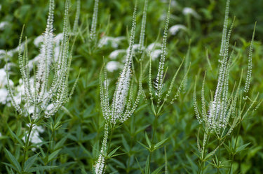 Veronicastrum virginicum 'Diana' is a statuesque perennial known for its tall, tapering spires of soft lilac-pink flowers that appear in abundance from midsummer to early autumn. The elegant flower spikes rise above neatly arranged whorls of deep green leaves, giving the plant a distinctive tiered appearance. Its upright form and refined colouring make it perfect for adding vertical structure and gentle colour to mixed borders, prairie-style plantings, or damp meadow gardens.