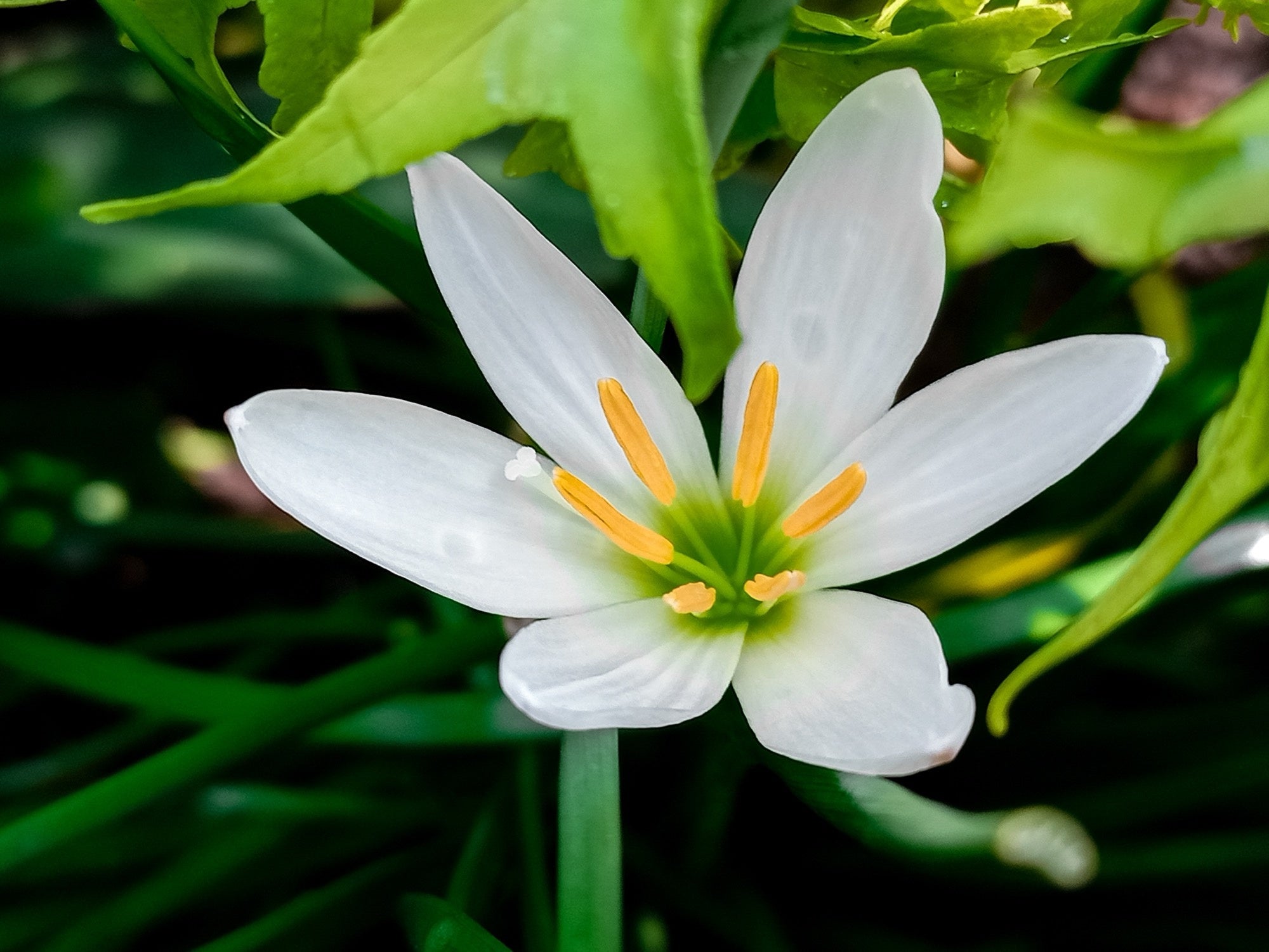 Zephyranthes candida, commonly known as white rain lily, is a clump-forming perennial with narrow, grass-like green leaves forming tidy tufts. In summer it produces delicate, funnel-shaped white flowers above the foliage, adding a subtle but elegant display to pond margins, borders, and containers.